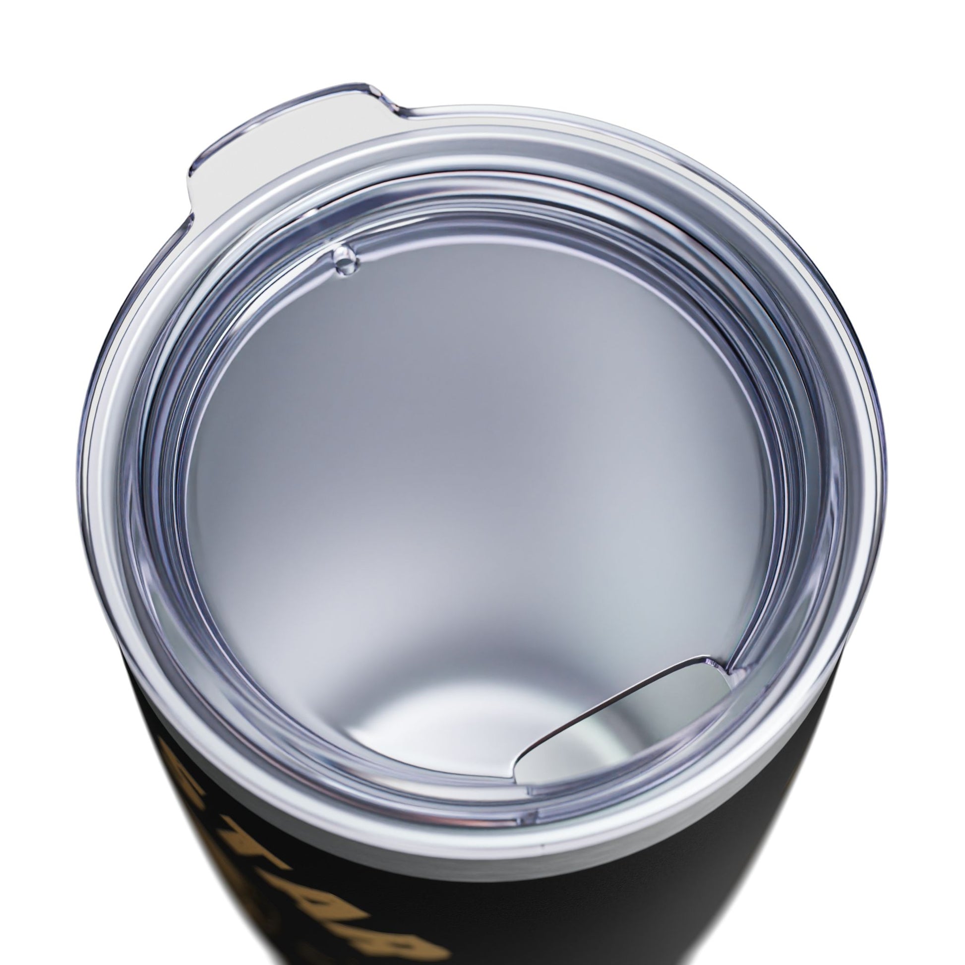 This 20oz ringneck tumbler carries a bold, rugged presence—matte black with a glossy, high-contrast emblem that reads like a worn patch. It feels like a companion on long drives, early mornings at the range, or late-night workshop sessions: solid in the hand thanks to the ribbed base and narrow mouth, quiet against the teeth with an easy-sip clear lid, and reliable through hours of heat or cold. The double-wall stainless body keeps coffee hot for up to 12 hours and cold drinks chilled for up to 24, while the vibrant, varnished print holds its sharp, vintage-inspired look. Choose from three base colors to match your gear, then wash gently by hand to keep the finish looking tough and true.