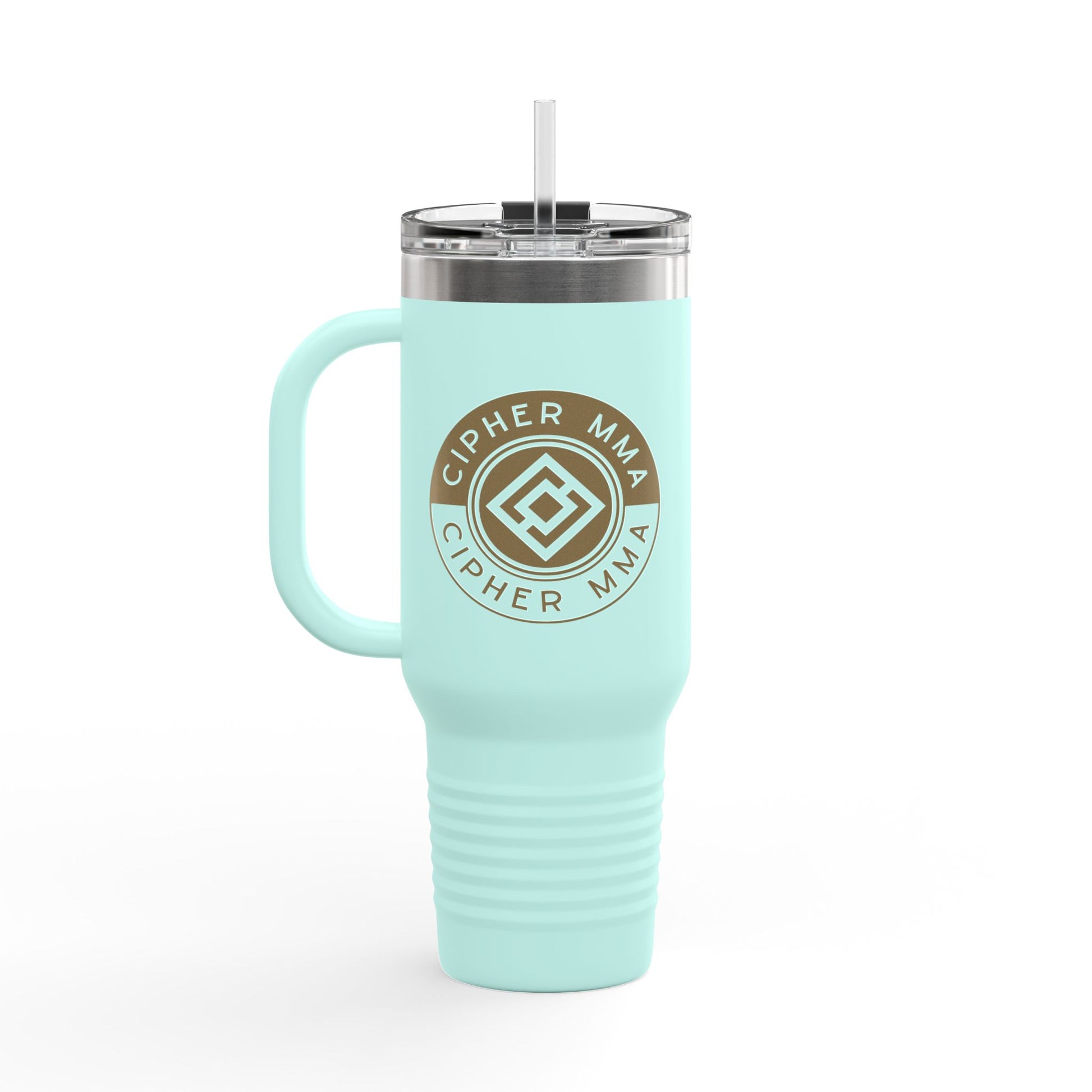 Cipher MMA 40oz Insulated Travel Mug — Large Stainless Steel Tumbler with Handle & Straw
