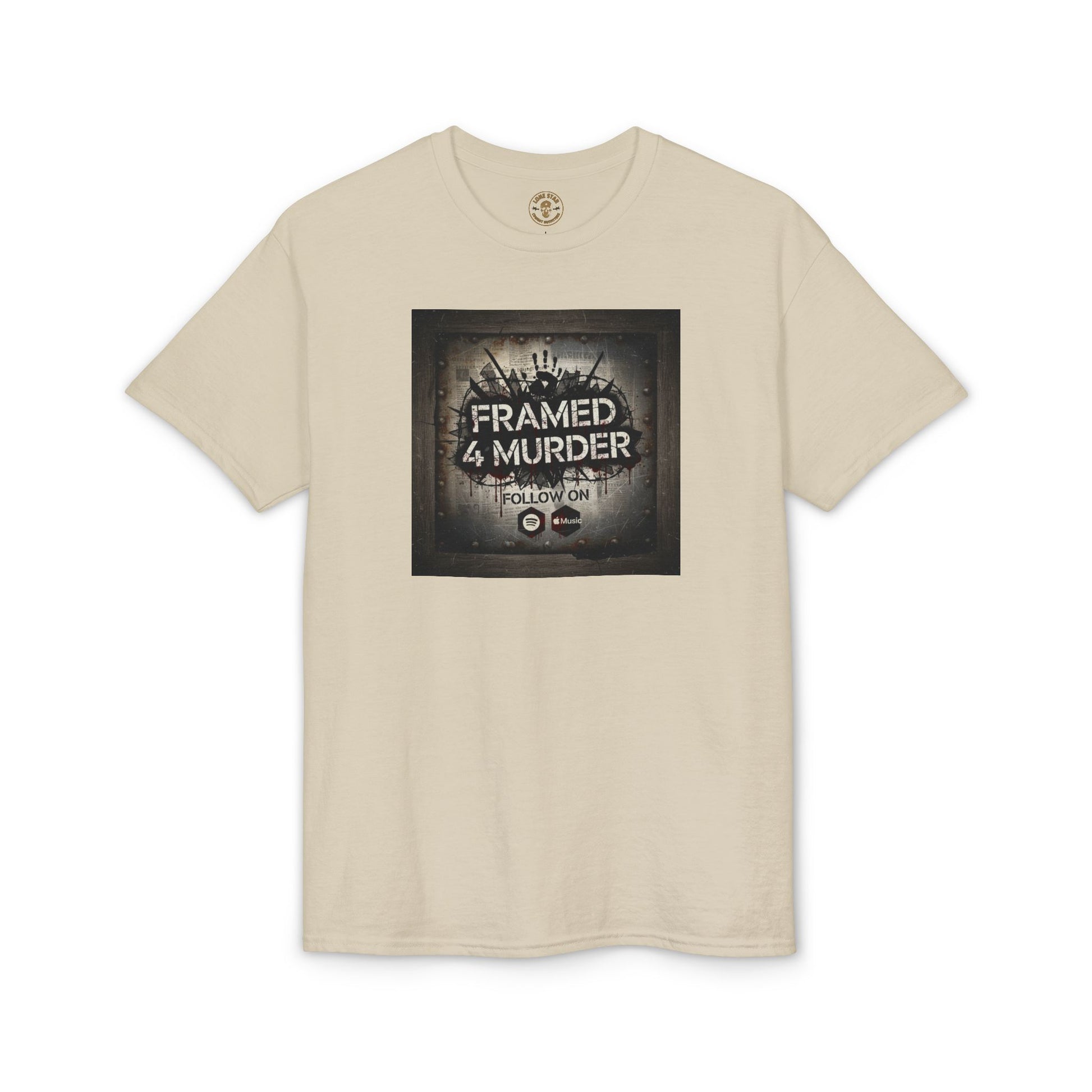 This soft, medium-weight tee carries a moody, rock concert vibe — a square, distressed graphic reading “FRAMED 4 MURDER” sits on the chest and back, with a small emblem on the sleeve for an extra nod to the theme. The shirt feels lived-in from the first wear: breathable, slightly textured knit that pulls moisture away and holds printed details crisply. Wear it to late-night listening sessions, murder‑mystery meetups, or while digging into the latest cold case — it slips easily into a layered streetwear look or pairs with denim and boots for a low-key, investigative edge.