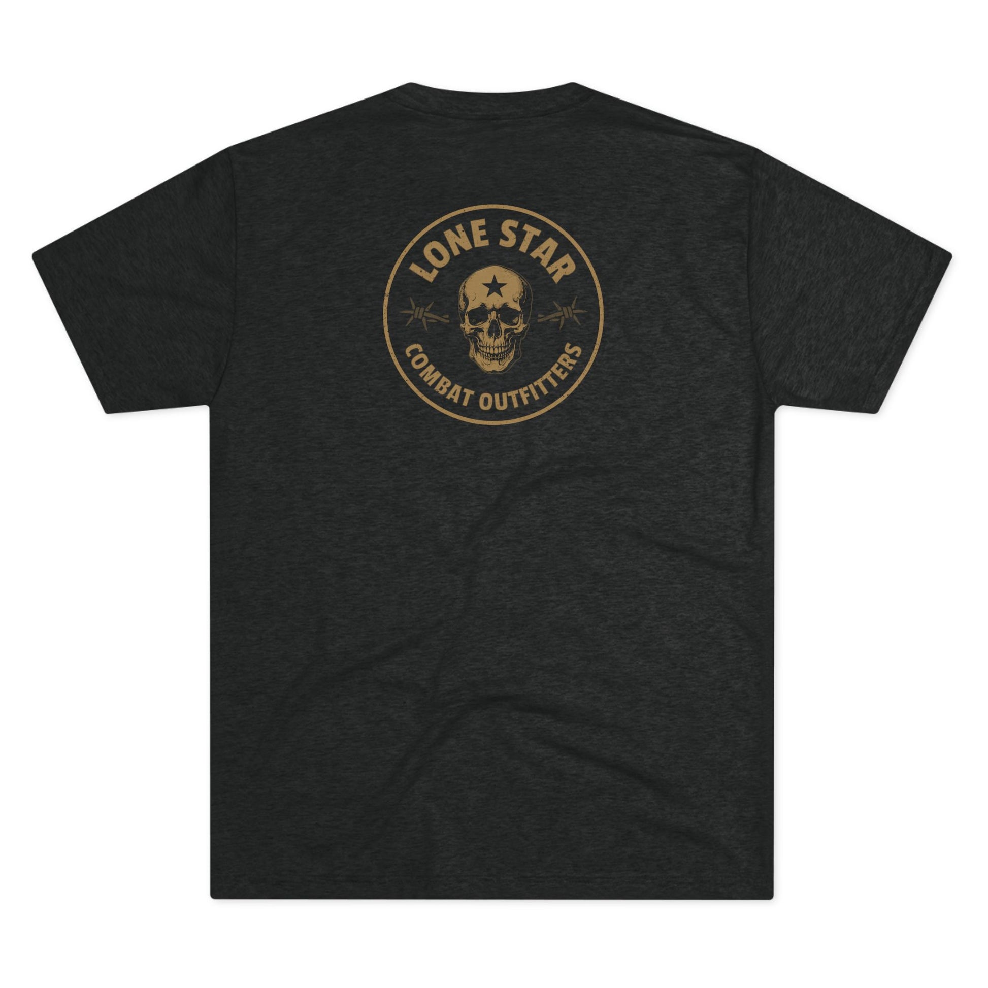 This lightweight crew tee brings a worn-in, outlaw energy to everyday wear. A muted, vintage-style skull emblem and distressed lettering read “Lone Star Combat Outfitters,” giving the shirt a rugged, tactical feel without shouting for attention. The fabric drapes softly across the chest and shoulders, moving easily from early-morning range sessions to backyard barbecues. It’s for people who value function and attitude — those who appreciate gear that looks lived-in right away and pairs naturally with boots, denim, or a field jacket. The subtle back print echoes the front motif for continuity, so the design reads from every angle and keeps the look cohesive.