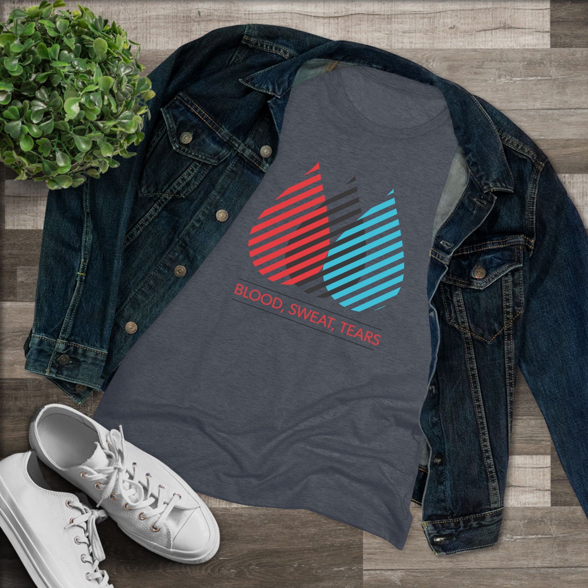 Women's Tee — 'Blood, Sweat, Tears' Striped Drop Graphic